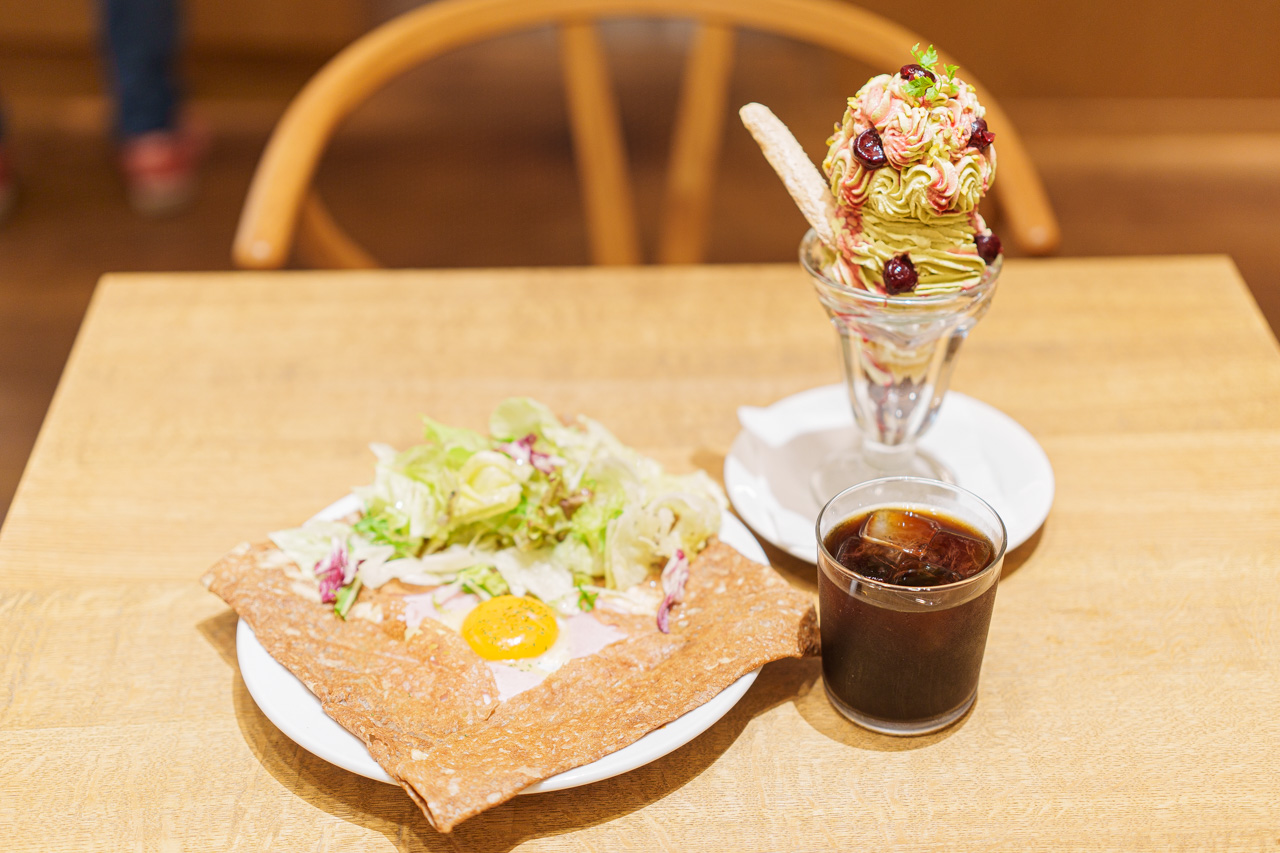 좀처럼 만나기 힘든 프랑스 과자와 갈레트, 크레페, 파르페 등을 먹을 수 있는 가게. 뭐니뭐니 해도 인기 메뉴는 햄 계란 치즈 갈레트 1300엔. 메밀가루가 향기로운 고급스러운 맛의 갈레트 안에 햄, 계란 치즈의 심플한 맛의 소재의 감칠맛과 곁들여진 야채 샐러드와 먹는 건강한 식사로도 만족할 수 있는 일품. 가게에서 직접 준비하는 케이크, 무스, 파르페등의 디저트도 즐길 수 있다. 거대한 비주얼의 파르페인 시실리엔누. 고급스러운 피스타치오 크림이 메인으로 새콤달콤한 프랑보아즈 소스와 샤베트, 파르페를 꾸준히 먹으면 머랭과 구운 과자도 곳곳에 들어있어 복잡하고 맛있는 맛으로 바삭바삭 달콤한 크리미와 다양한 식감을 즐길 수 있는 볼륨 가득한 디저트.