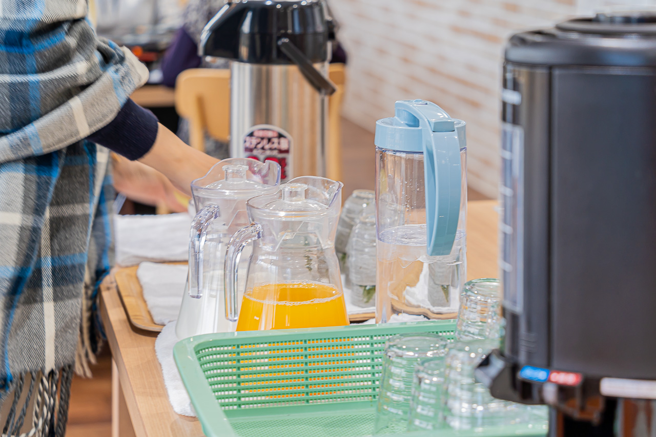 간장을 발라 구운 일본식 김, 멸치 볶음, 이름 모를 조림들, 시금치 무침, 온천 계란이라고 불리우는 계란 반숙, 그리고 아침에 마시기 좋은 부드러운 된장국이 나옵니다.