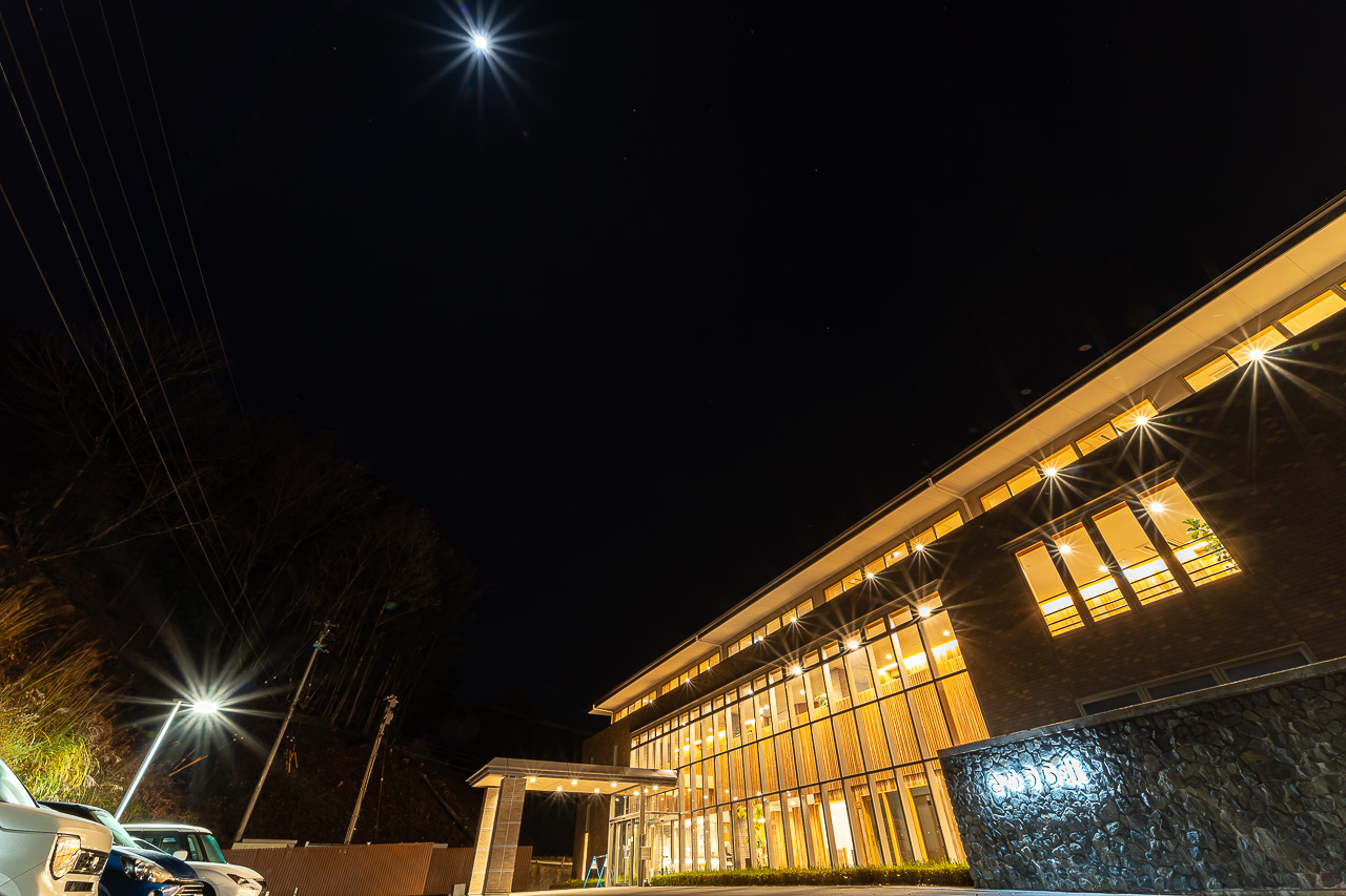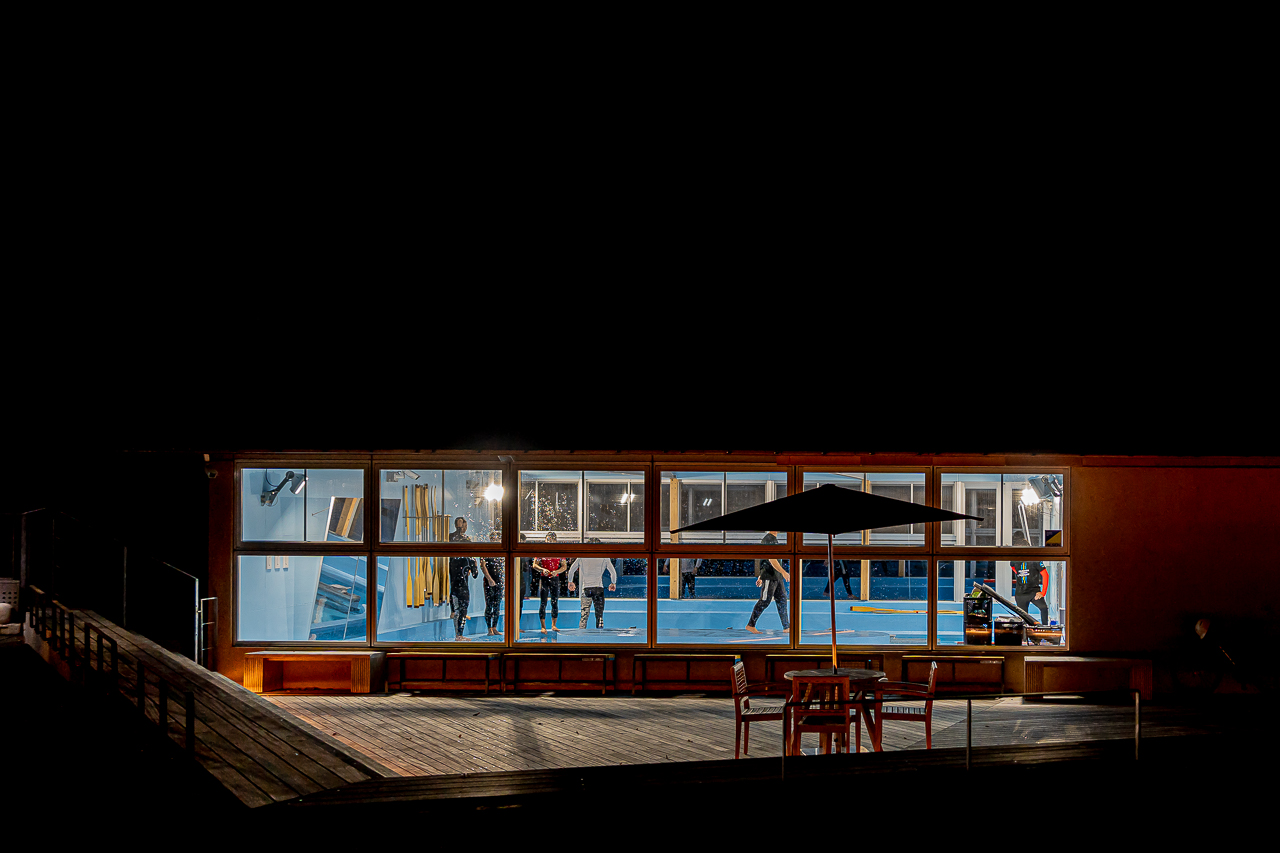 밤에는 옆의 "사메우라 카페"에서 연습으로 바쁜 카누 선수들이 보입니다.