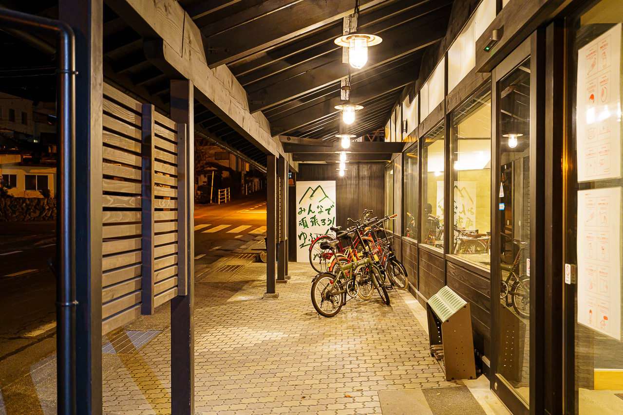 유후인은 저녁이 되면 불빛이 거의 없이 깜깜한데 료칸 시설들만 불이 밝게 빛나고 있습니다.