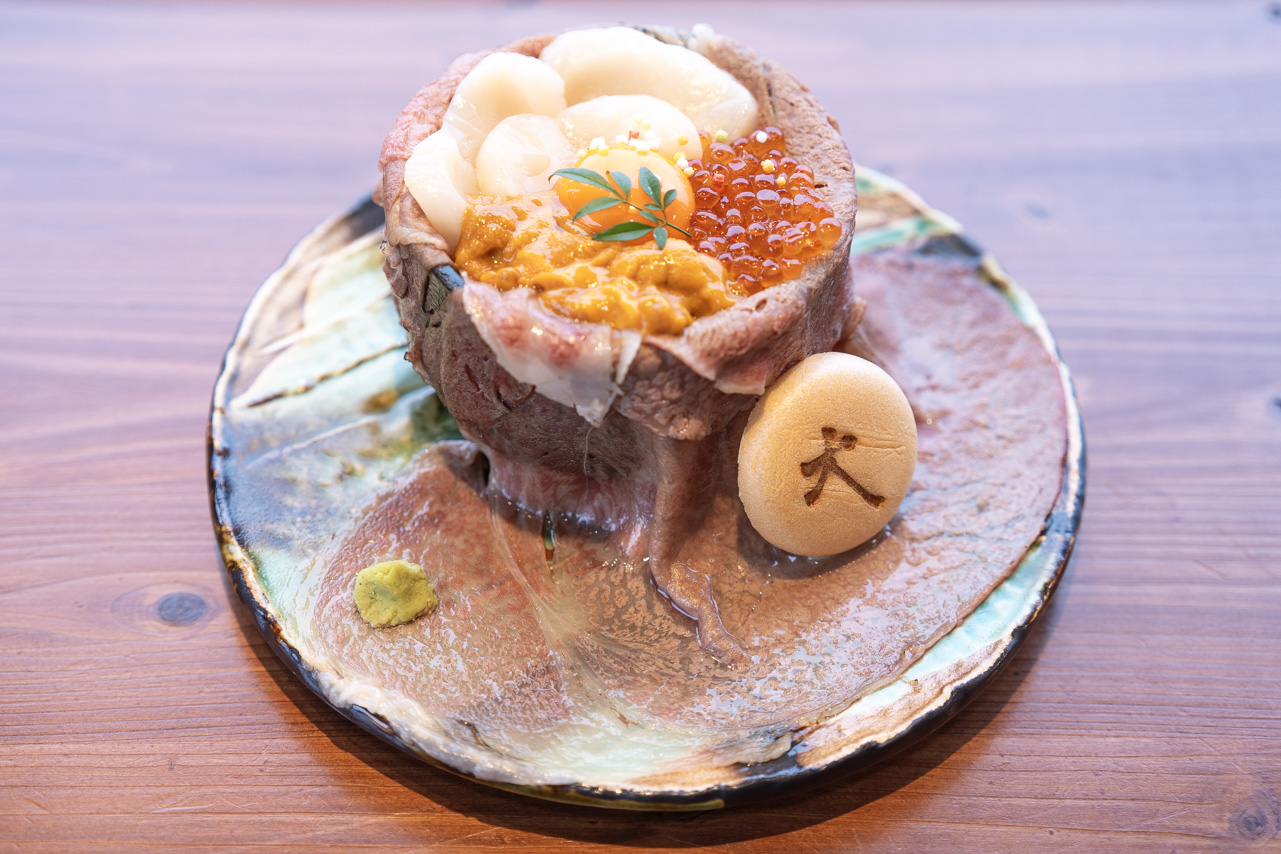 교토 아라시야마역에서 도보 6분 거리에 있는 와규 덮밥 전문점 "오아가리". 이 가게는 얇게 썬 와규를 밥 위에 두 겹으로 얹고 토치로 구워내는 방식이 특징이다. 대표 메뉴는 2,420엔이며, 가리비·우니·연어알 등 고급 토핑도 선택할 수 있다. 노른자와 함께 먹는 구성으로 비주얼과 만족도를 모두 잡았다. 식사 후에는 다시를 부어 오차즈케 형태로 색다르게 즐길 수 있다.