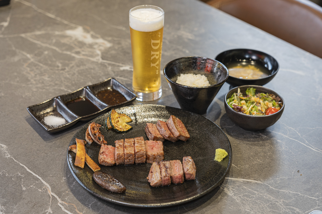 후시미이나리 신사 인근에서 뜻밖에 만난 와규 전문점 와규의 길(和牛道)은 가볍게 즐기는 비프동부터 본격 철판구이까지 선택지가 분명한 곳이다. 기본 메뉴인 와규 비프동(3,000엔)은 두툼한 고기에 은은한 트러플 향이 더해져 고기 맛에 집중하기 좋다. 제대로 즐기고 싶다면 A5 와규 3종 철판구이(10,000엔)로, 오픈 키친에서 구워내는 퍼포먼스와 부위별 식감 차이를 비교하는 재미가 있다. 소금·와사비·폰즈로 맛 변화를 주고, 맥주 한 잔과 함께하면 후시미이나리 관광 후 만족스러운 한 끼가 된다.