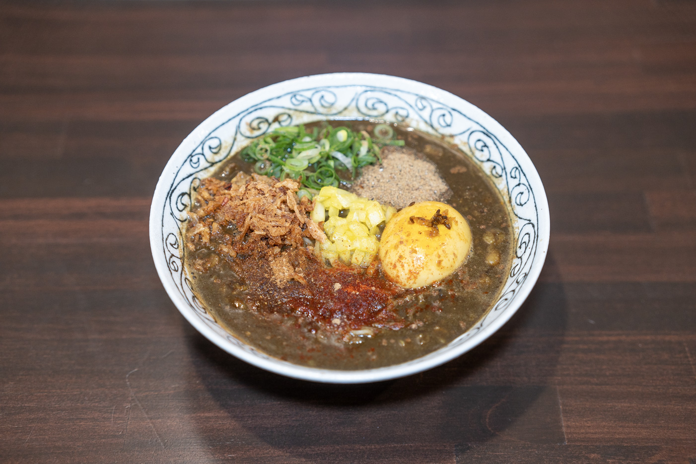 교토 고조역에서 도분 8분 거리의 카레전문 식당 "키친 캄파넬라". 검은 카레 국물에 부드러운 면발이 어우러져 깊고 진한 맛을 자랑한다. 토핑으로는 고추가루, 어니언 후레이크, 니보시, 구조 파 등이 더해져 풍미를 높인다. 반숙 계란을 추가하면 국물 맛이 한층 부드러워져 조화가 뛰어나다. 비주얼은 카레이지만, 향은 스파이스, 맛은 다시로 마무리되는 독특한 조합이 인상적이다.