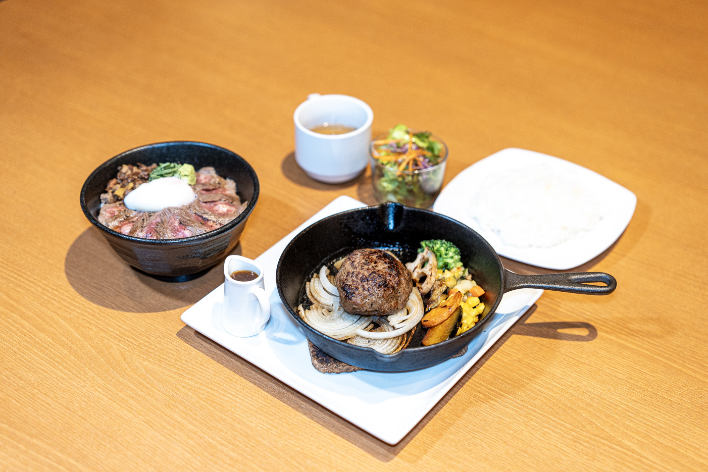 구마모토까지 가지 않아도 하카타에서 아카우시의 참맛을 즐길 수 있습니다. 반 레어 상태로 제공되는 아카우시동은 고기의 감칠맛과 식감을 그대로 느낄 수 있고, 불꽃 퍼포먼스 후 등장하는 함바그는 육즙이 풍부하고 진한 맛이 매력입니다. 넓은 좌석에서 고기 본연의 맛에 집중할 수 있는 점도 큰 장점입니다.