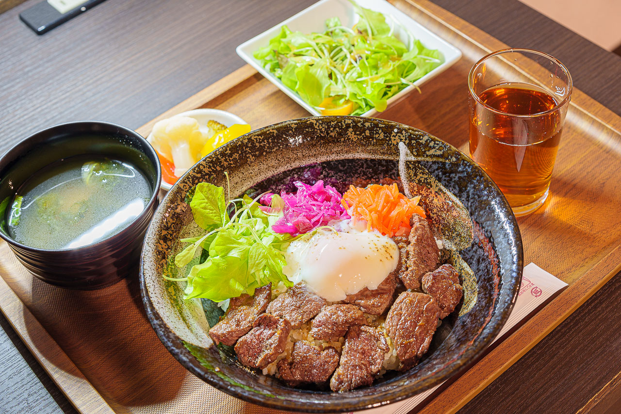 저녁은 세트메뉴로 "스테이크 덮밥"이 나왔습니다