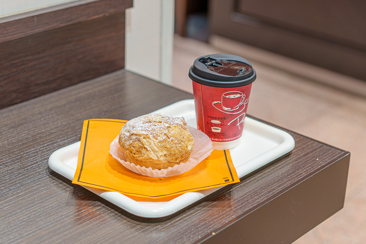 오타루의 명물인 "키타카로"에서 특제 슈크림빵과 커피도 빼놓을 수 없습니다.
