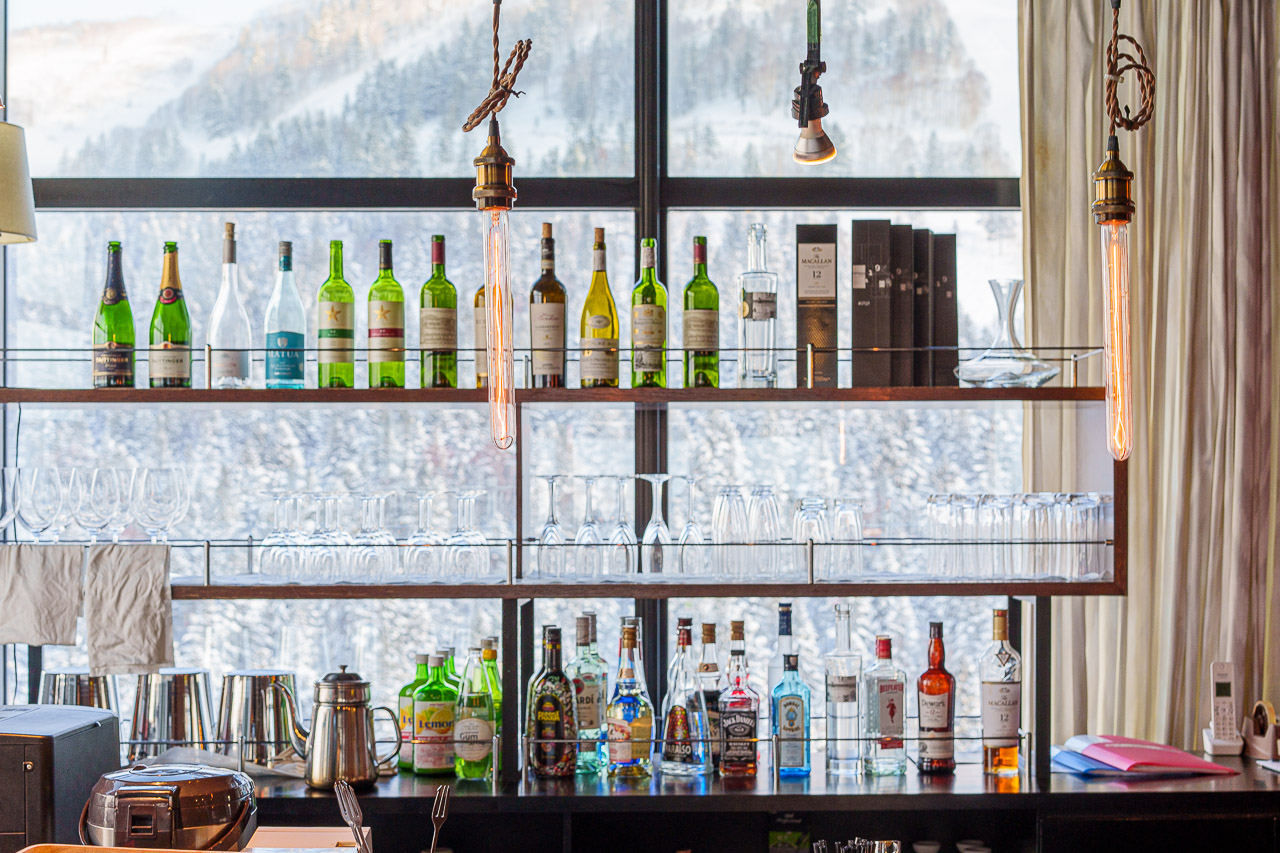 스키나 보드를 타는 사람들이 장비 그대로 들어와서 식사나 맥주를 마실수 있는 곳입니다.