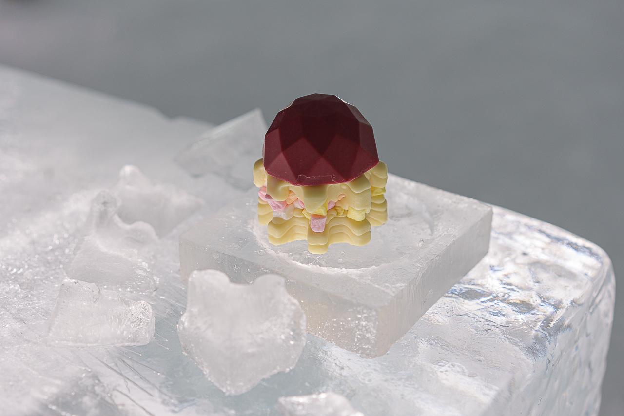 설탕으로 된 판을 제거하니 위에 올려져 있던 과일과 크림이 후두둑 떨어지네요.