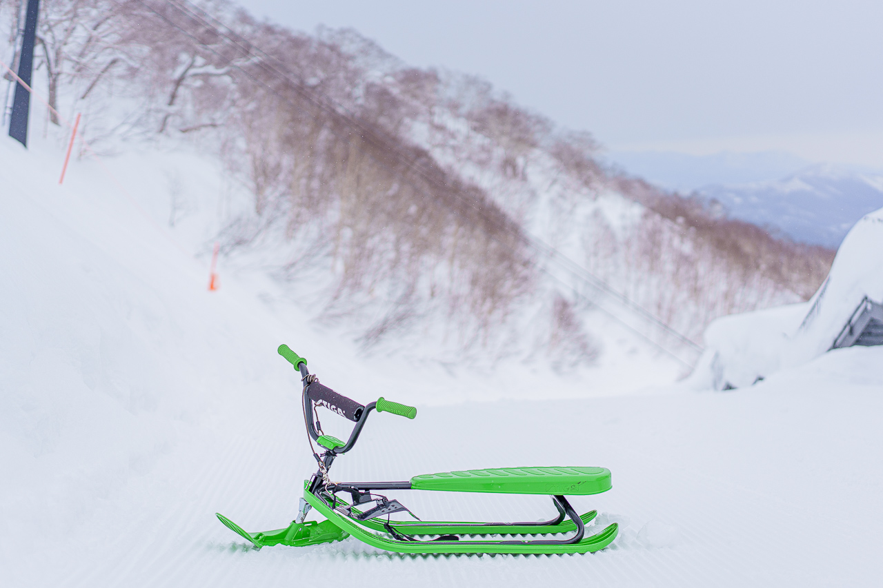 스키나 스노보드를 못 타서 브레이크가 달린 "스노 카트"를 빌렸습니다.