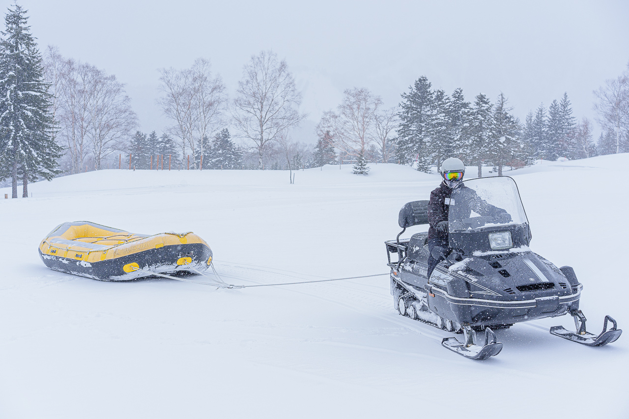 오키나와 바다에서 바나나보트는 질리도록 타봤는데 눈길에서 타는 래프팅 보트는 색다르네요.