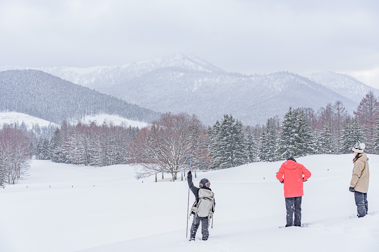 다음은 눈길을 걸을 수 있는 "스노 슈"를 이용한 "스노 슈 가이드와 함께 하는 숲의 산책"을 체험해 봅니다.