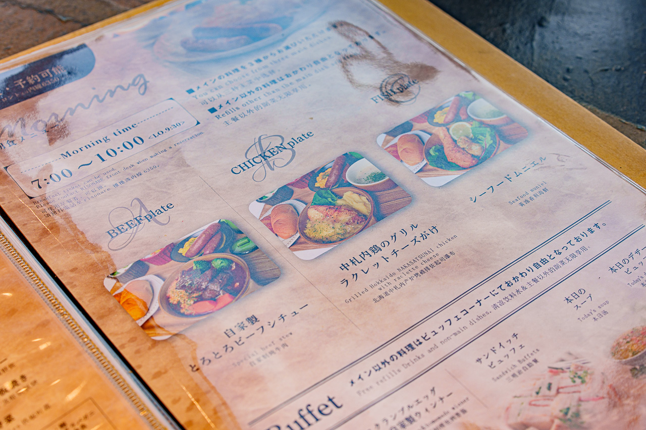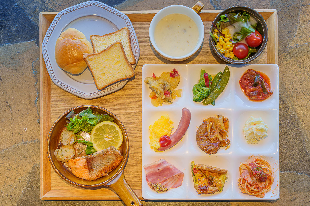 조식 내용은 세미 뷔페 형식으로 메인은, 수제 진한 비프스튜, 홋카이도 브랜드 닭고기와 치즈의 조합, 연어와 가리비구이의 3가지의 메뉴 중 1가지를 주문하고, 나머지는 뷔페 코너에서 자유롭게 가지고 올 수 있습니다.