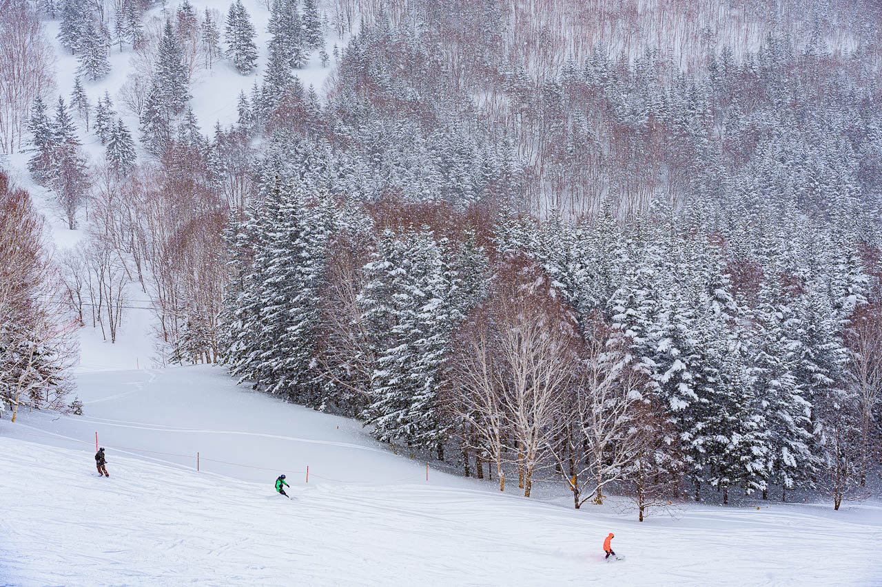 홋카이도 서해안에는 시베리아에서 불어 온 찬 공기가 동해를 넘어오며 서북 계절풍으로 변해 대량의 강설이 일어나고 눈이 내리고 난 건조한 공기가 니세코, 후라노, 토카치 등 내륙 지역으로 이동하여 주변의 산을 타고 상승하면서 온도가 크게 낮아져 다시 눈구름을 형성하고 파우더처럼 부드러운 눈이 내리게 됩니다.