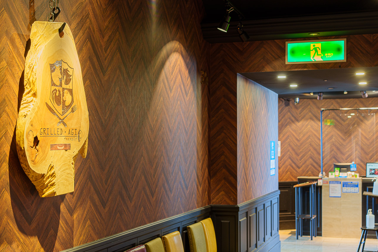 벽에는 나무 스키 보드와 스톡이 장식되어 있는데, 분위기가 너무 좋아 포토존이라고 해도 과언이 아닙니다.