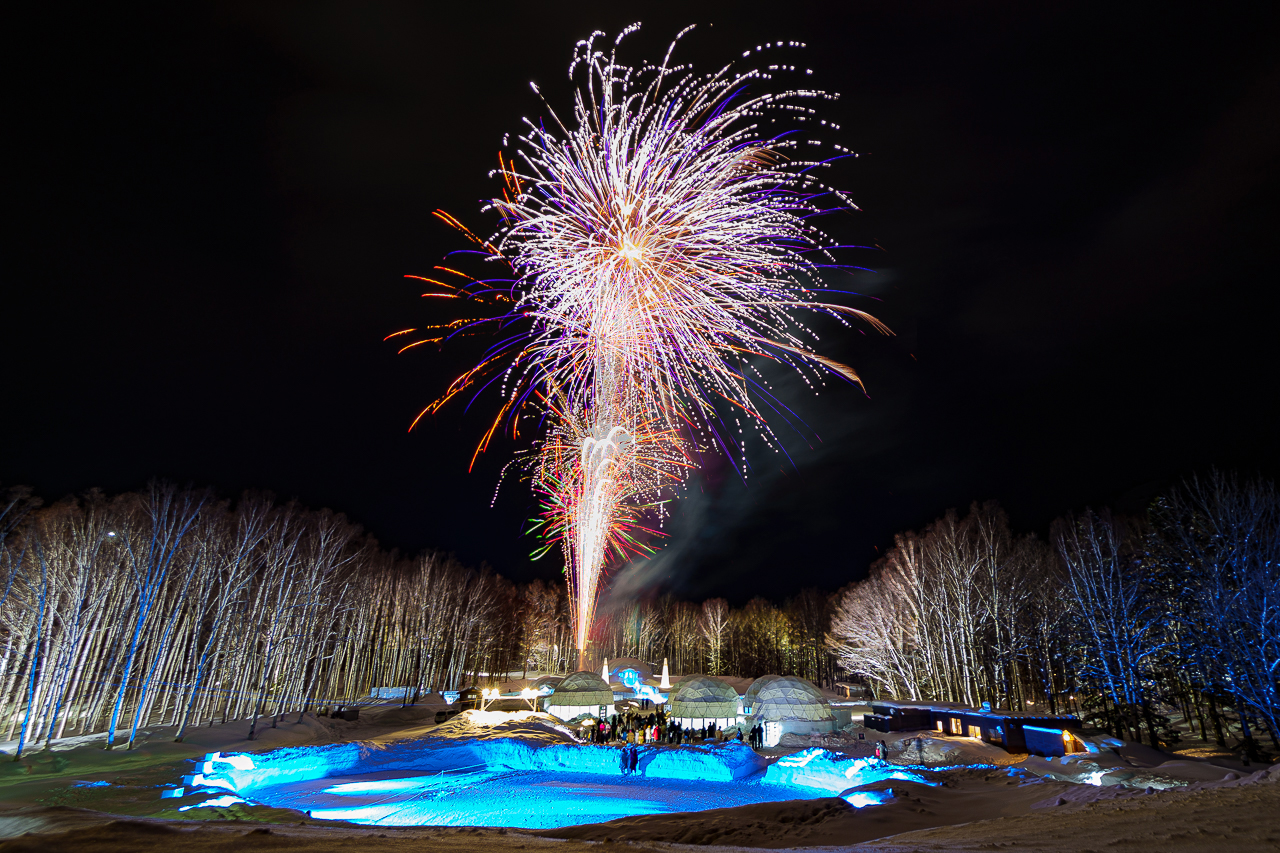 즐거운 겨울 액티비티를 즐겼던 호시노 리조트 토마무에 밤이 찾아왔습니다. 호시노 리조트 토마무는 매년 12월부터 2월까지, 얼음으로 만들어진 마을인 "아이스 빌리지"를 오픈합니다. 아이스