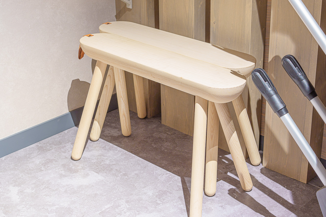 어딘가 스키 보드와 닮은 의자는 입구에서 장비 탈착을 할 때 너무 편리합니다. 센스 만점.