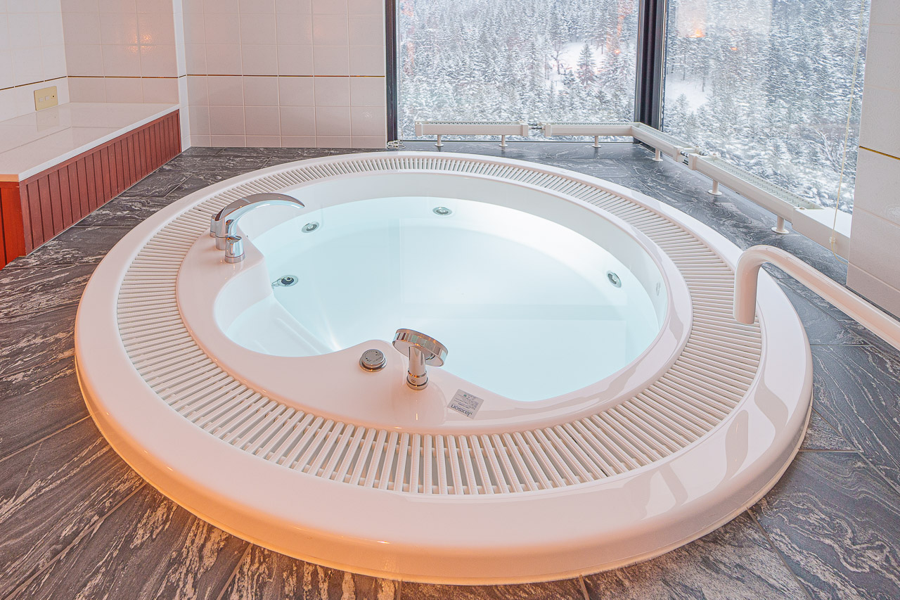 그리고 리조나레 토마무의 하이라이트인 월풀 욕조가 나옵니다.