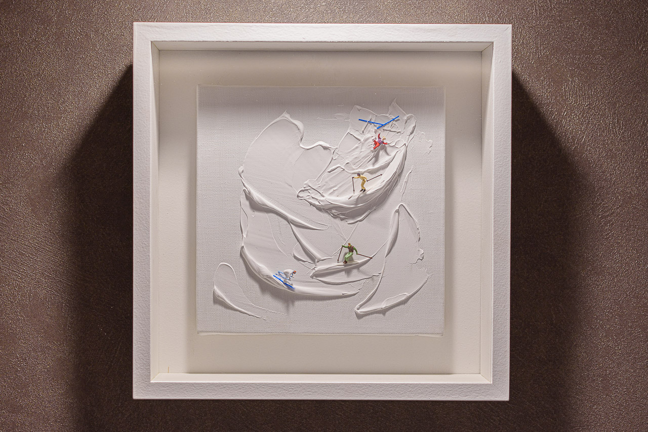 벽의 나무 오브제에는 깨알 같은 스키어의 시그니처가 들어가 있네요. 이런 시그니처들이 곳곳에 숨어 있어 방심할 수 없습니다.