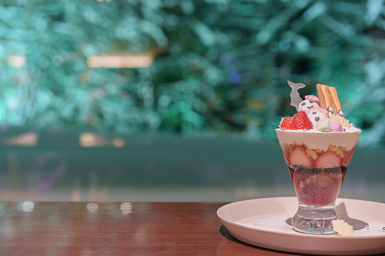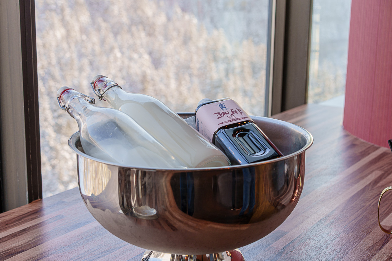 이름에 걸맞게 커다란 통유리의 건너편에는 눈으로 뒤덮인 나무들이 라이트업 되어 있어, 신비한 분위기를 자아냅니다.