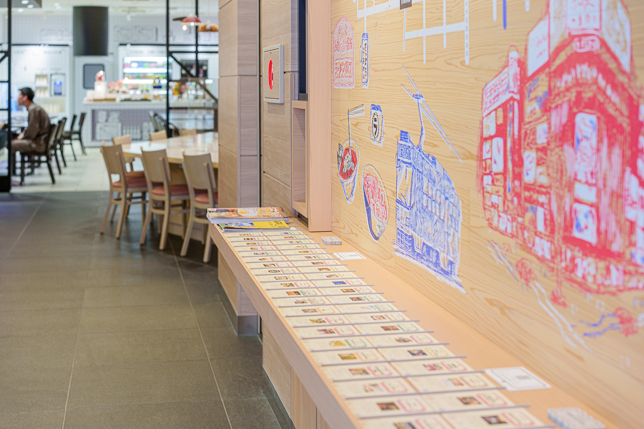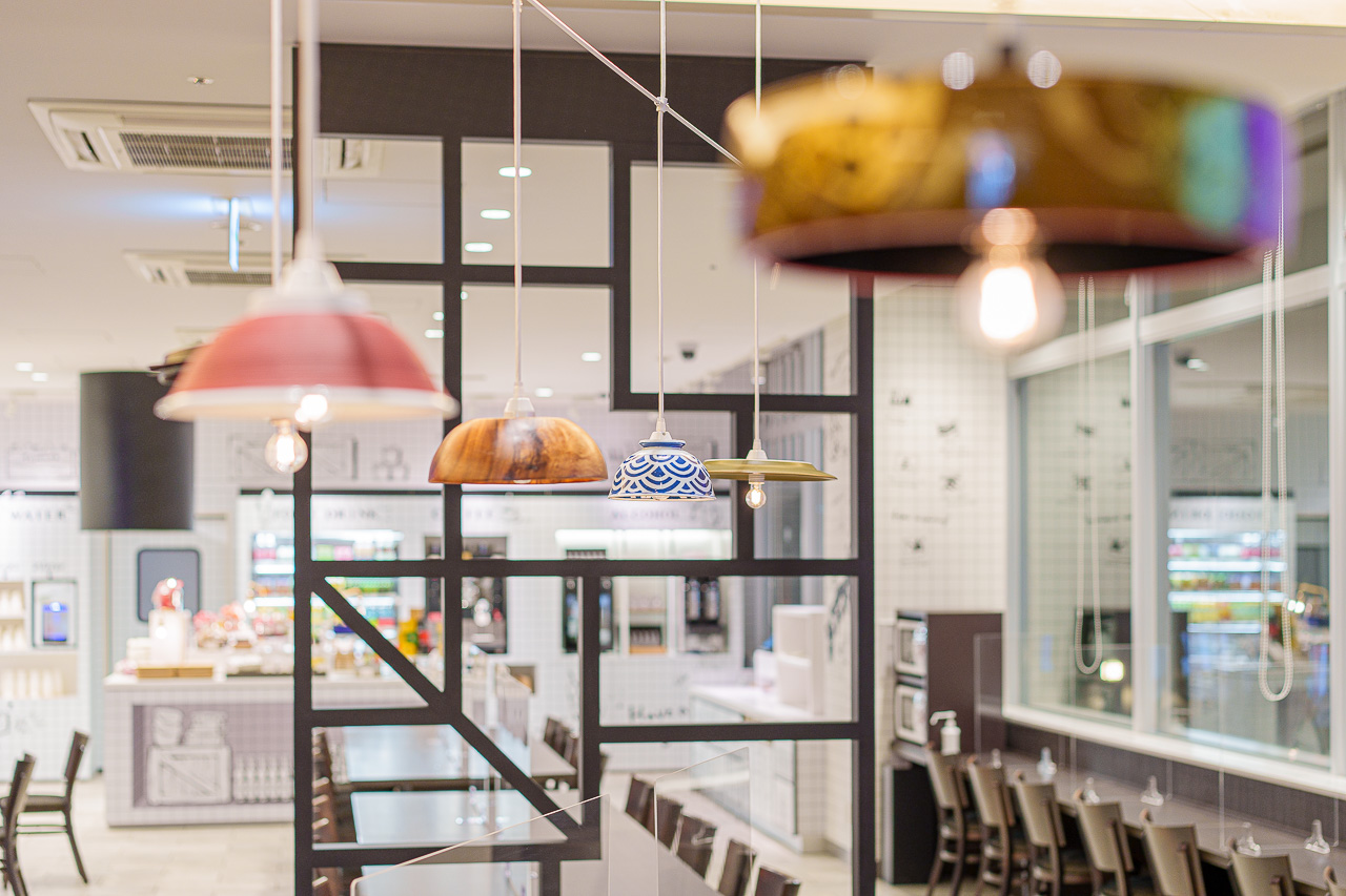 각종 일본의 맛있는 먹거리들을 담는 그릇으로 만들어진 전등을 비롯해, 테마에 걸맞는 인테리어도 개성이 넘칩니다.