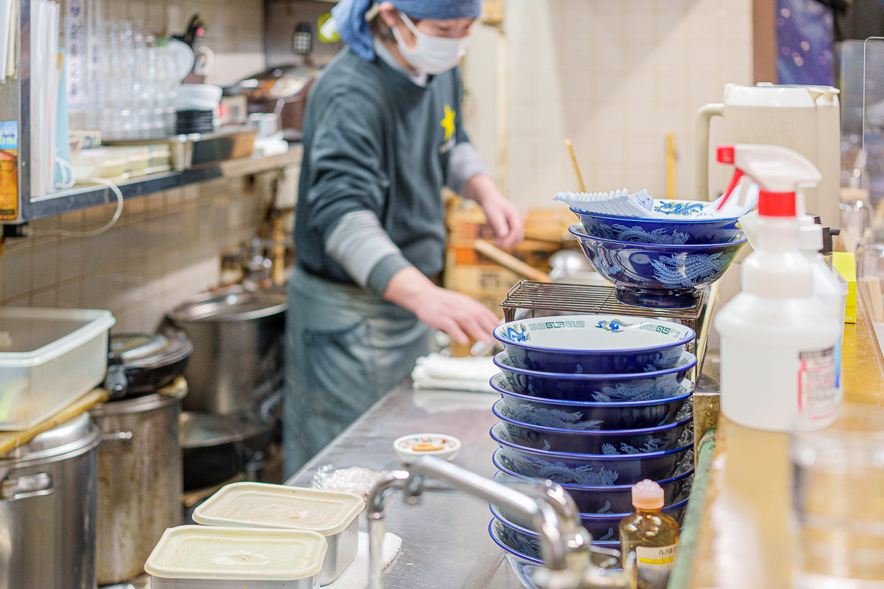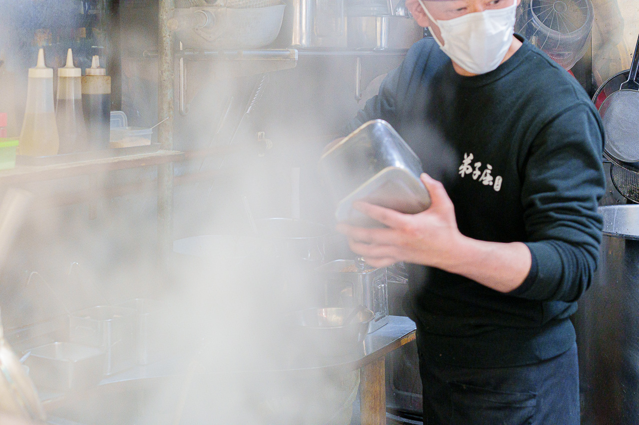 점내에는 라멘을 삶는 수증기로 가득하고 주방장의 손놀림이 쉴 새 없이 분주해 집니다.