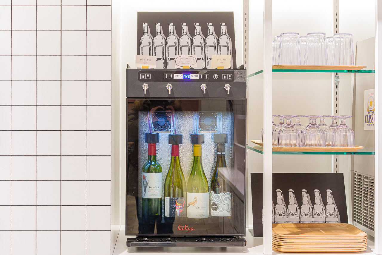 글라스 와인을 마실 수 있는 와인 서버와