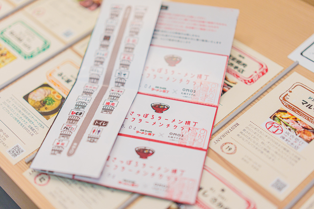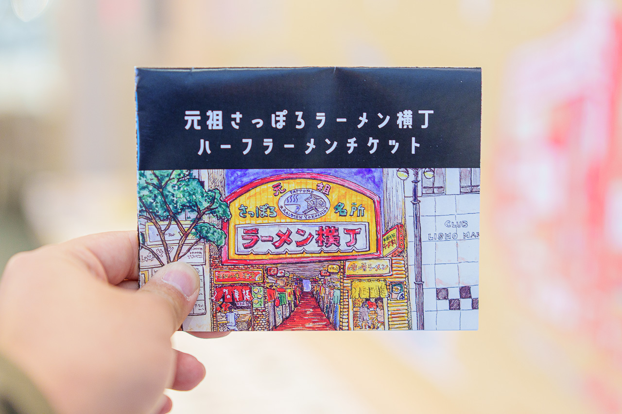 17곳에 달하는 삿포로 라멘 요코초의 점포에서 3그릇을 먹어 볼 수 있는 "하프 라멘 티켓"을 줍니다.