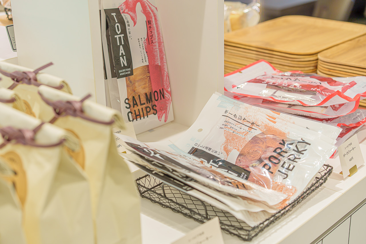 홋카이도 답게 연어의 포와 옥수수 과자도 보입니다.