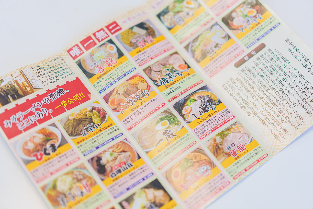 라멘 비교 하기 플랜을 예약하면 체크인을 할때, 스스키노에서 유명한 삿포로 라멘 요코초의 가게 리스트와