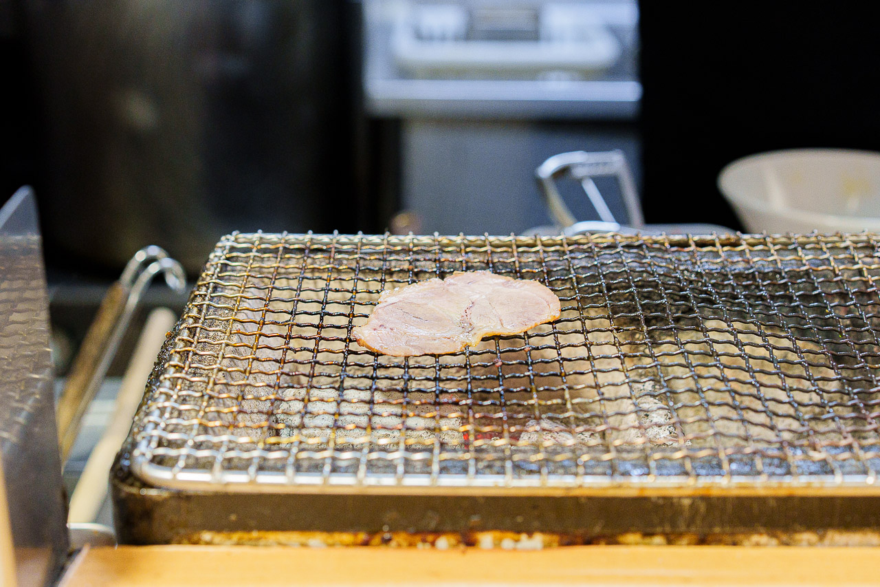 숯불에 지글지글 구워지는 "돼지고기 차슈"의 맛있는 냄새가 참을 수 없네요.