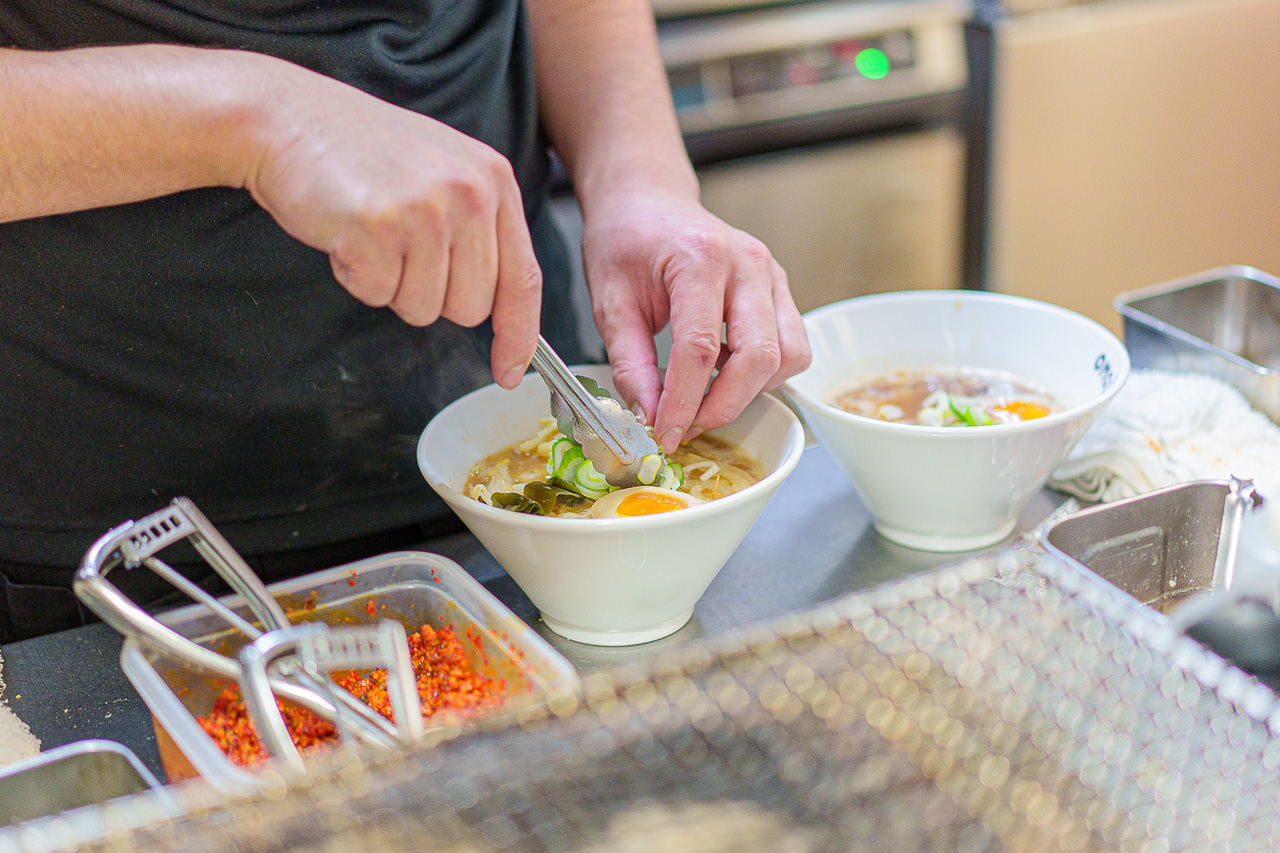 점내에는 라멘을 삶는 수증기로 가득하고 주방장의 손놀림이 쉴 새 없이 분주해 집니다.