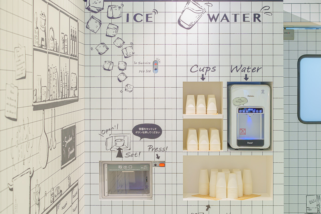 각종 일본의 맛있는 먹거리들을 담는 그릇으로 만들어진 전등을 비롯해, 테마에 걸맞는 인테리어도 개성이 넘칩니다.