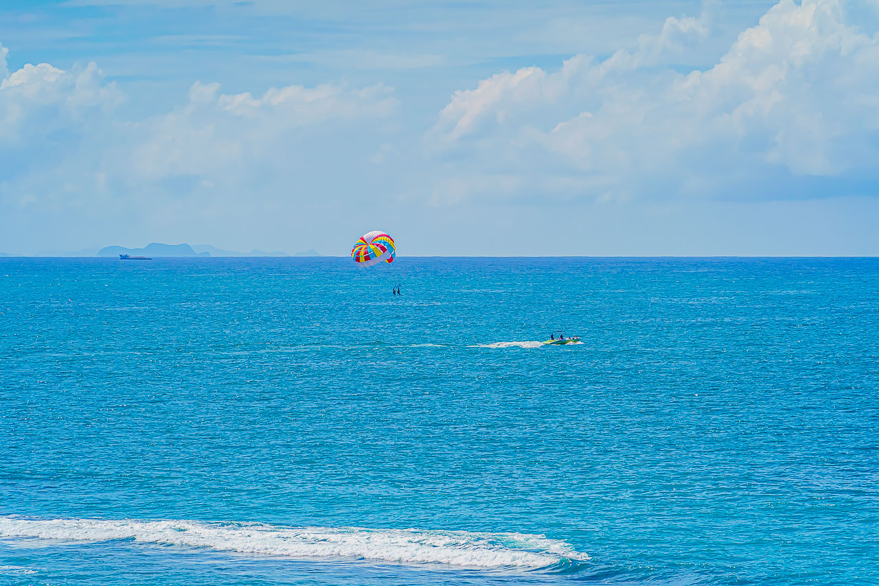 선셋 비치에서는 크루즈나 패러세일링 등의 마린 액티비티가 한창입니다.
