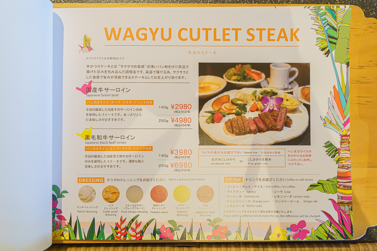 와규 스테이크는 가격이 조금 비싼 편으로 140g에 약 3000엔~4000엔 정도 잡아야 합니다.