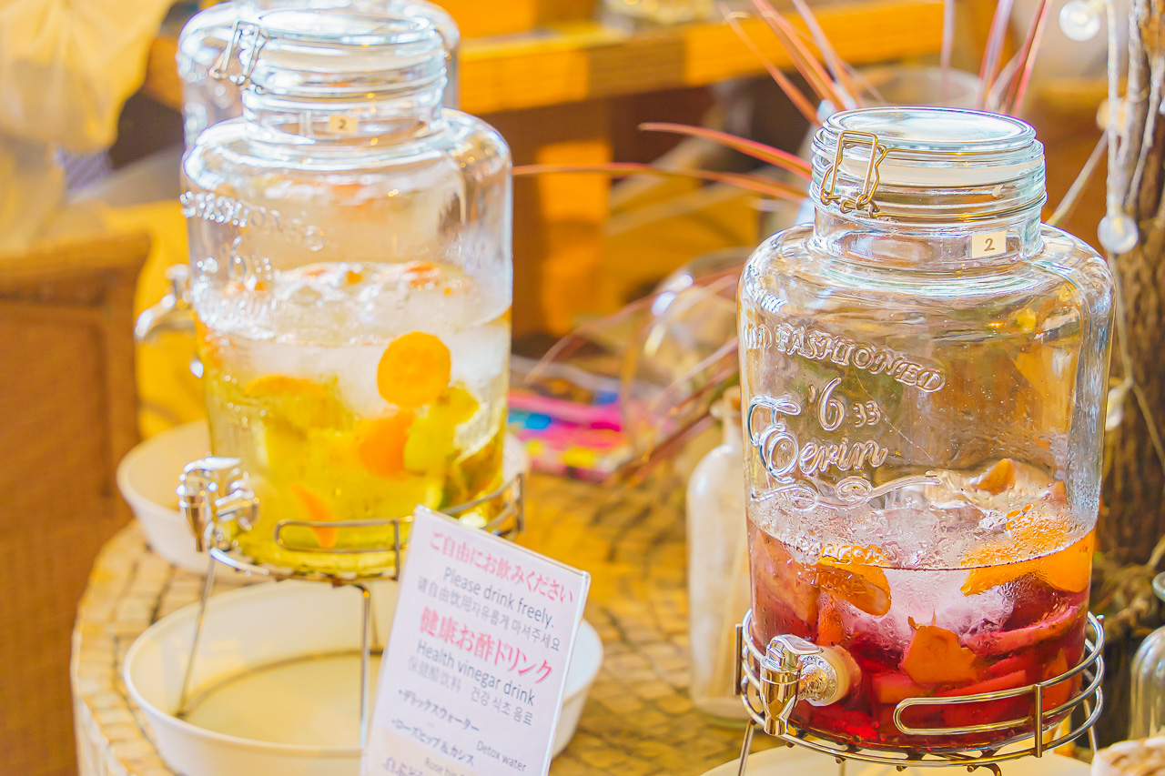 여성들에게 인기가 많은 가게인 만큼 "디톡스 워터"도 준비되어 있습니다.