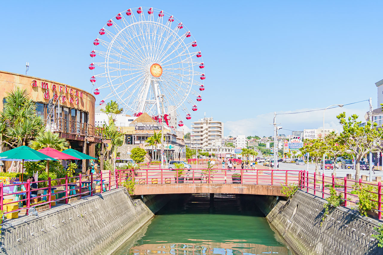아메리칸 빌리지는 미군 시설 캠프·포스터 중 해안을 따라 있던 함비 비행장이 1981년에 반환되어, 1988년에는 비행장에 인접하는 해안에서 새롭게 매립지가 조성되었고 거기서 미국스러운 분위기를 살려 만든 곳입니다.