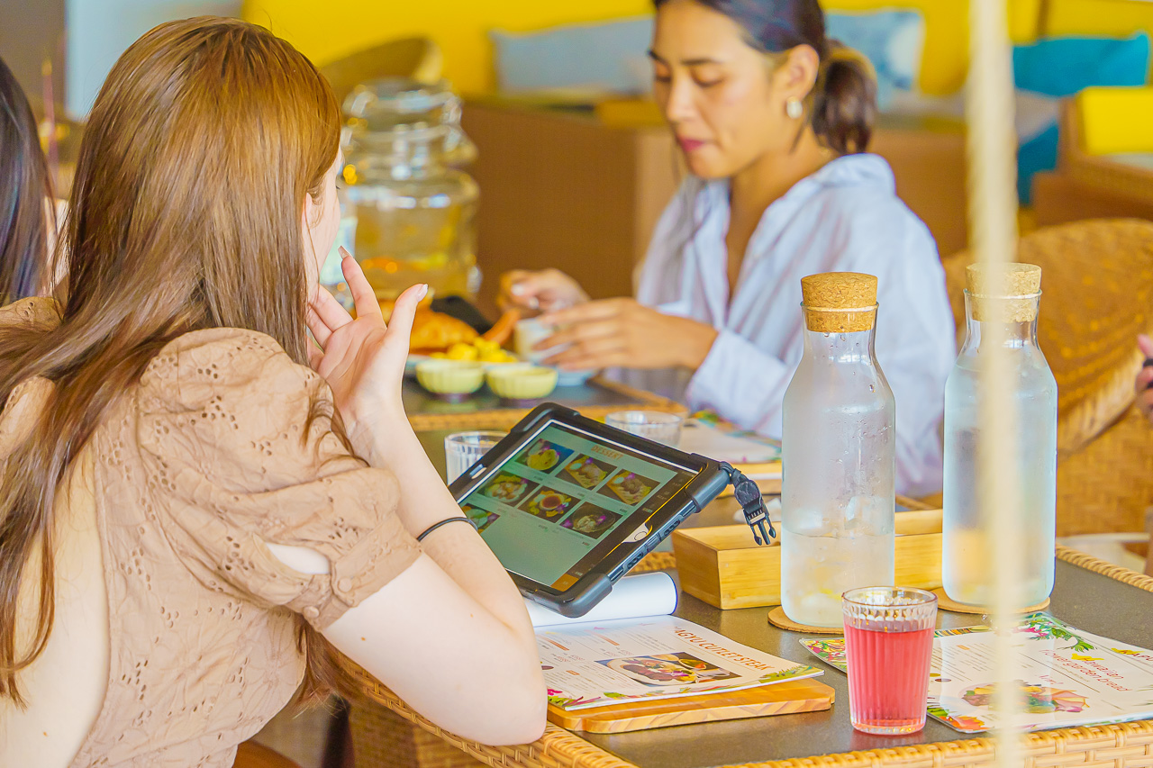 메뉴판이 있지만 어째서인지 터치 패널로 주문을 해야 합니다.