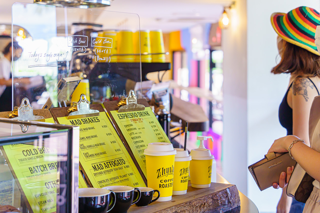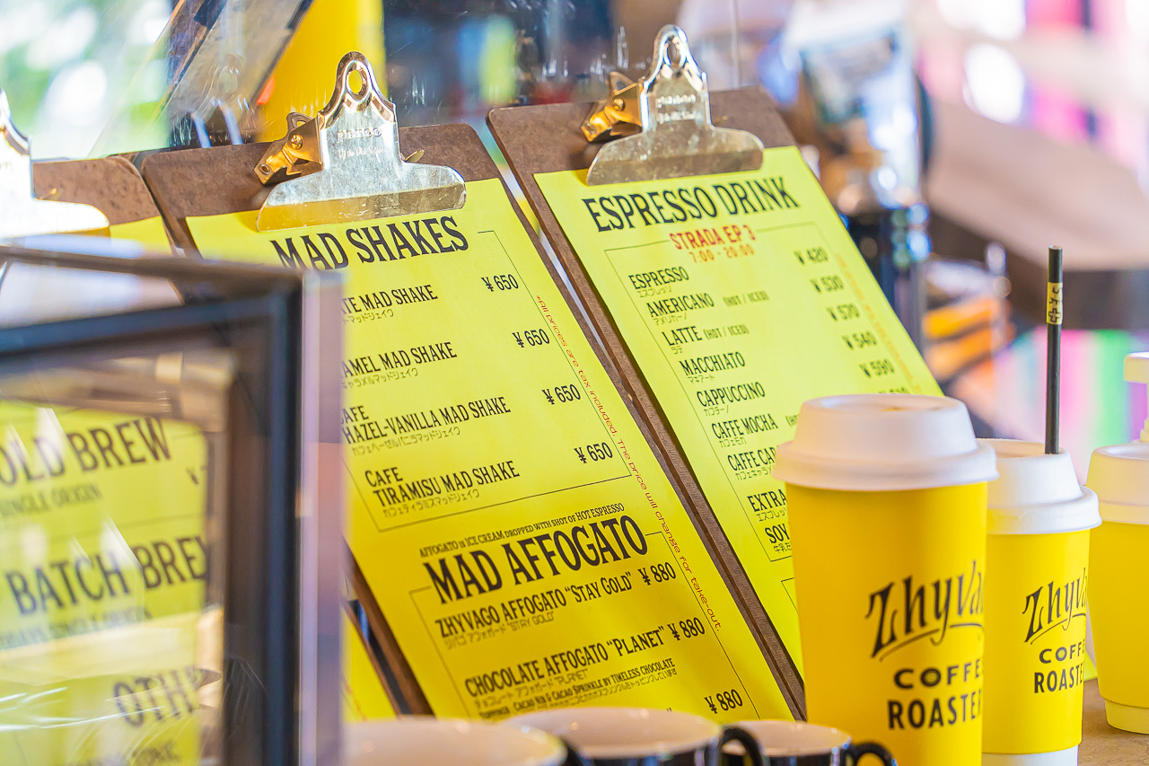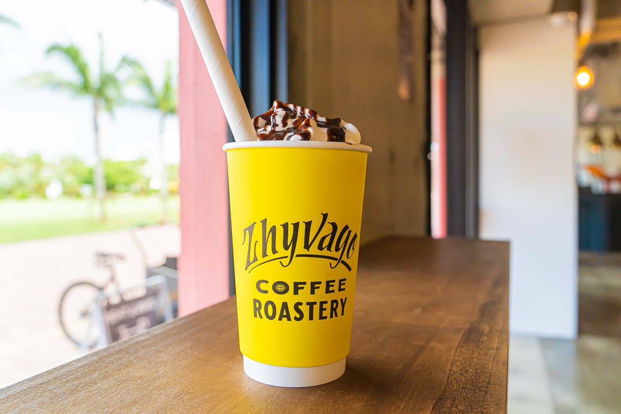 오키나와의 서해안과 미국의 서해안의 느낌을 합친, 하이브리드 공간을 제공하고자 꾸며진 커피 스탠드 "ZHYVAGO COFFEE ROASTERY"