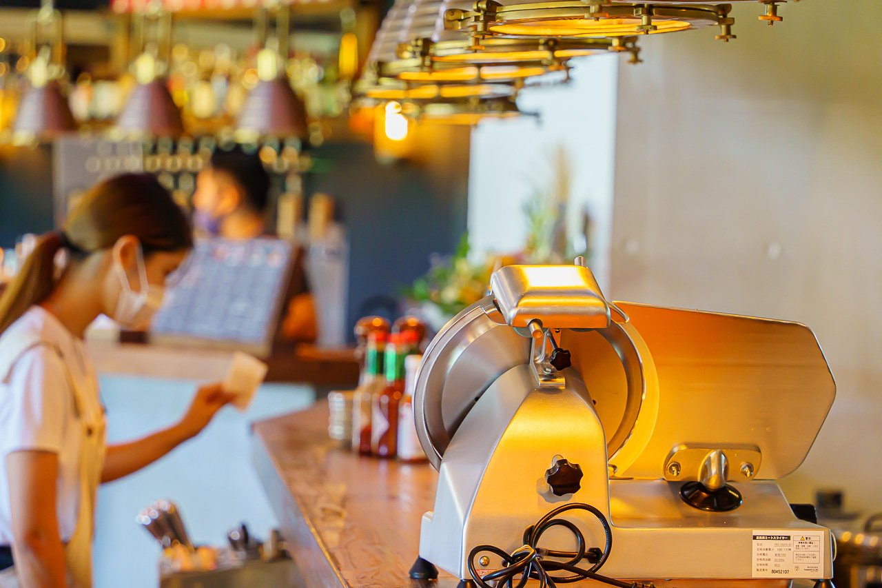 내부는 오키나와에서 유행하는 "인더스토리얼 인테리어"로 빈티지 느낌이 물씬.
