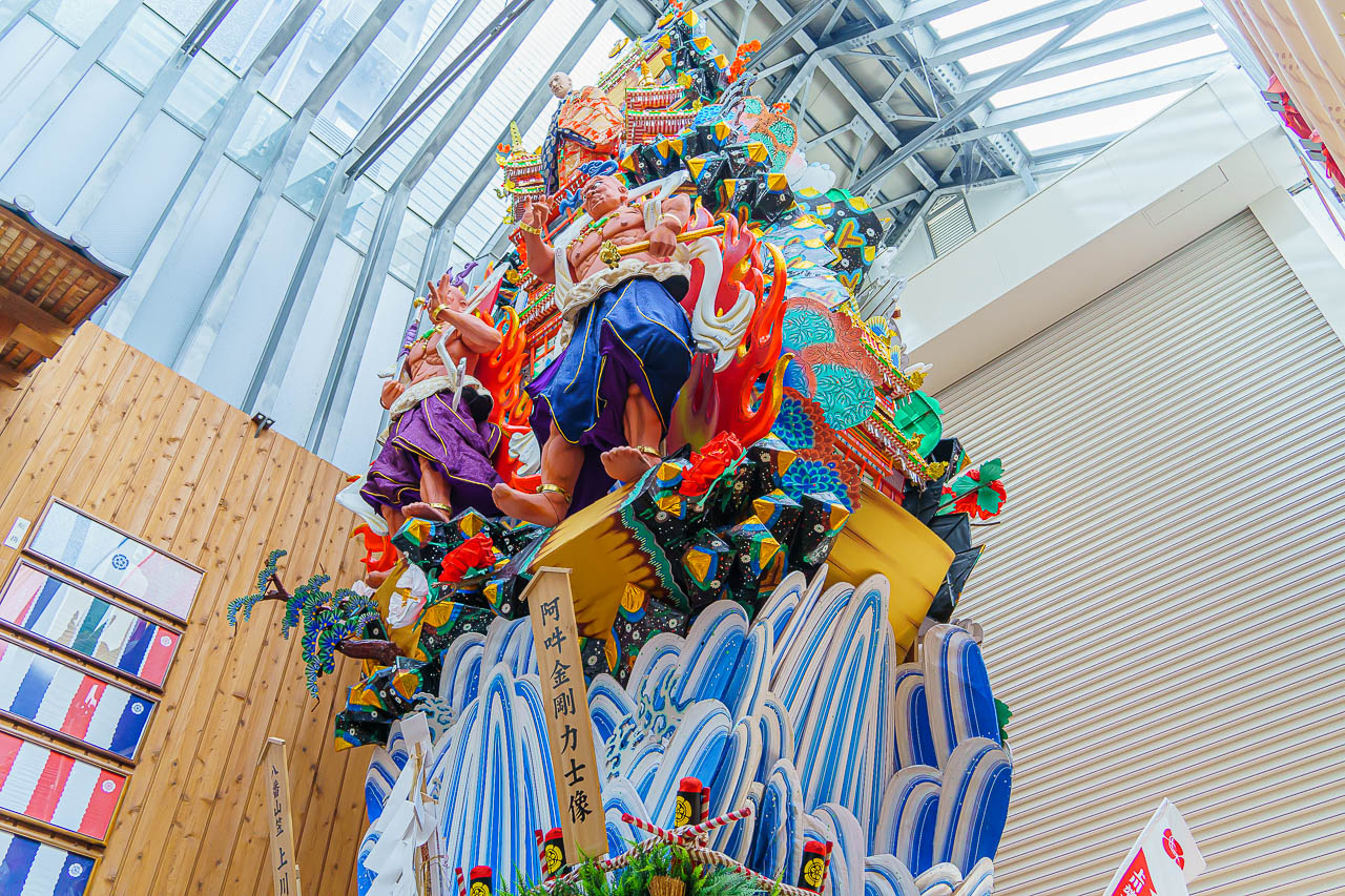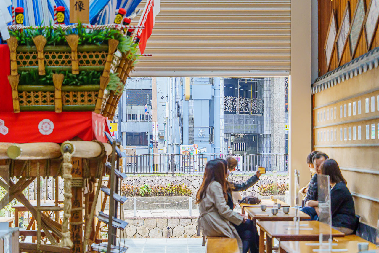가게의 한가운데에는 "하카타 기온 야마카사 축제"의 "야마카사"가 놓여 있습니다.