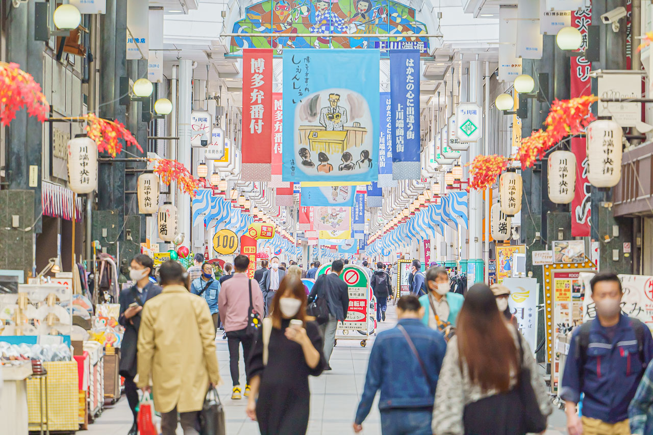 그 중에서도 하카타에서 가장 역사가 깊은 "카와바타 상점가"