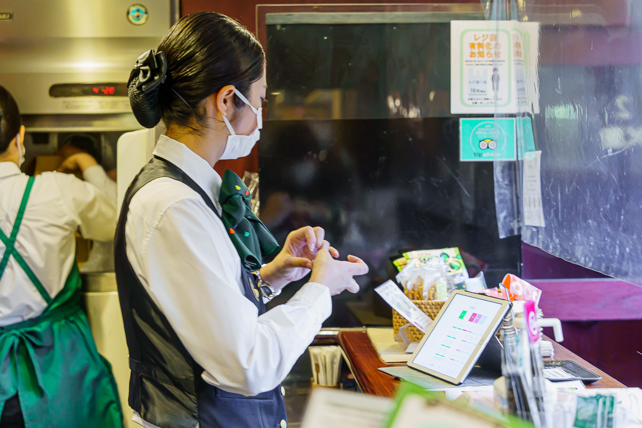 차내 매점인 뷔페에서는 근처 지역의 식재료를 사용한 음식이나 음료를 판매하고 있습니다.