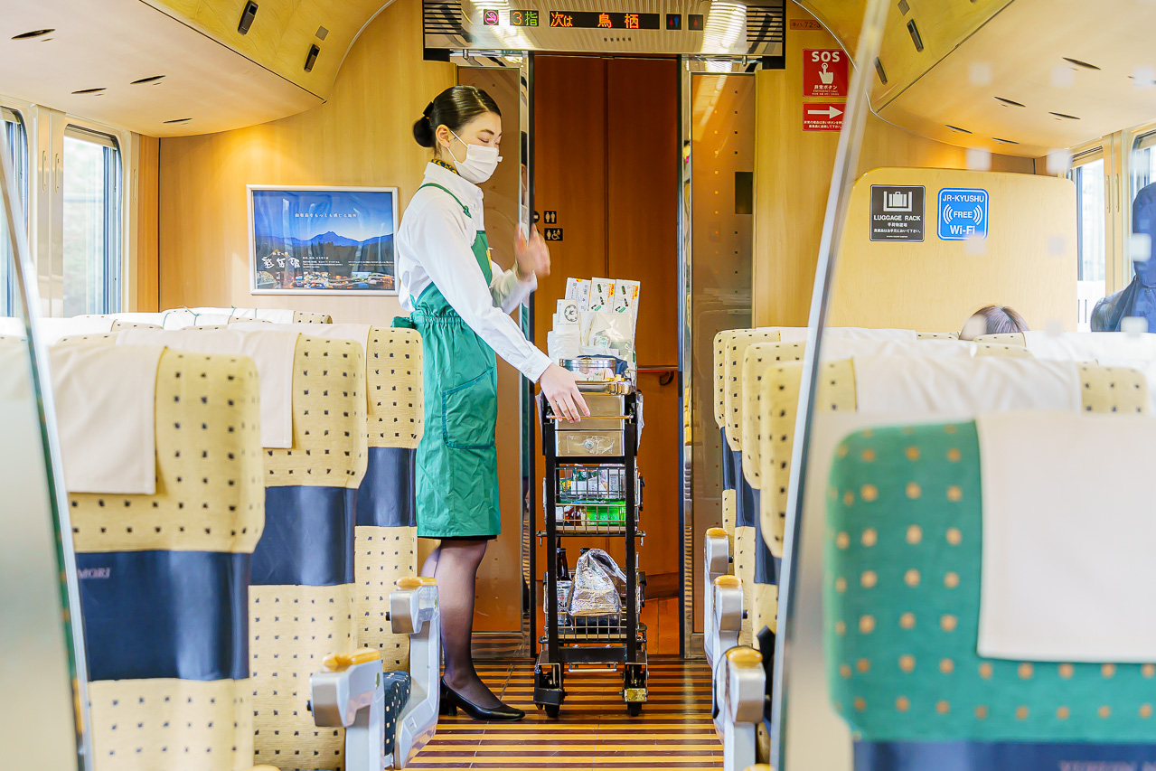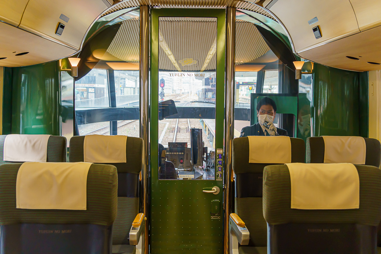 살롱 스페이스에서는 분고모리에서 유후인역 사이, 객실 승무원에 의한 유후인의 관광 안내가 행해집니다.
