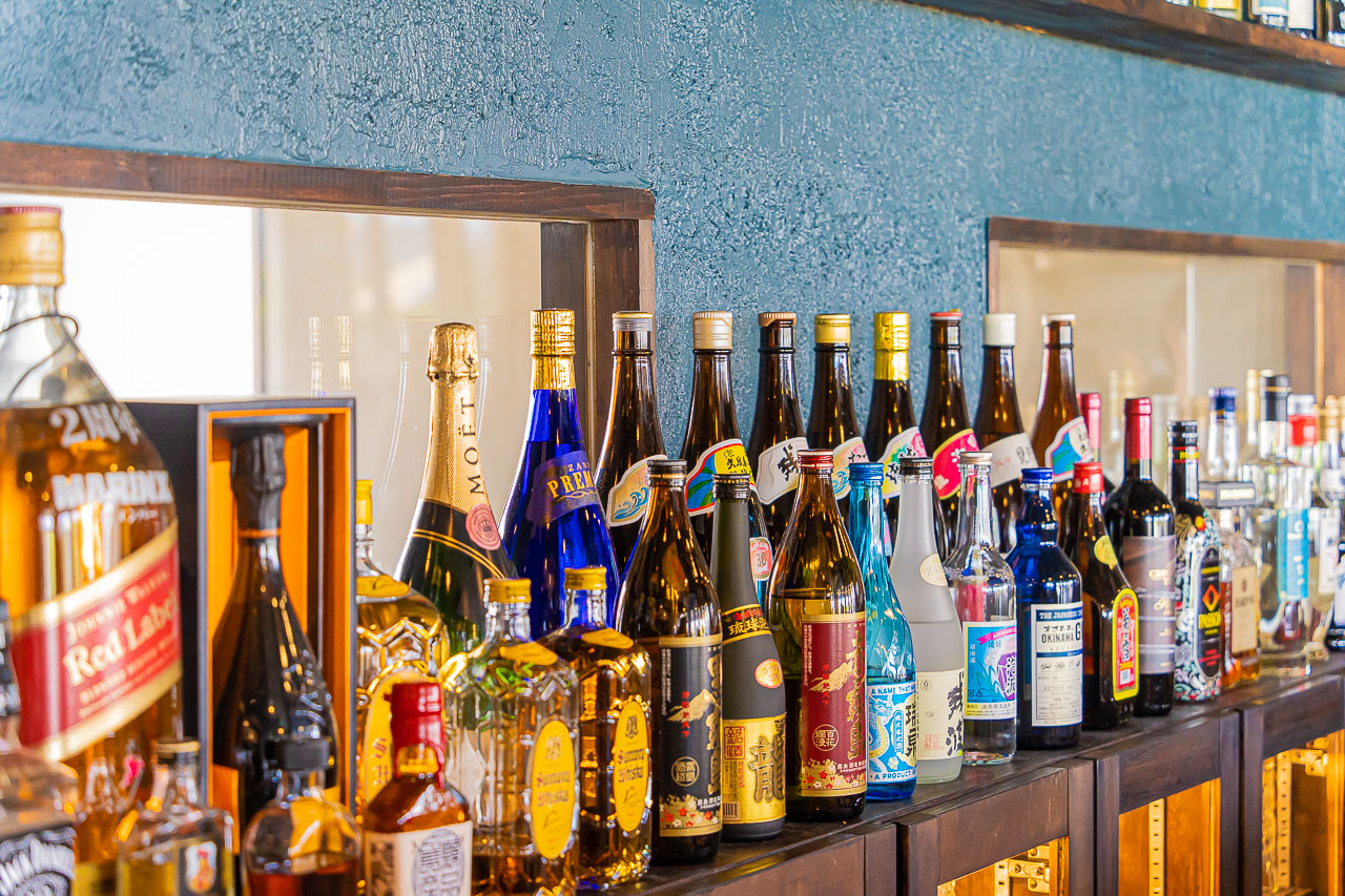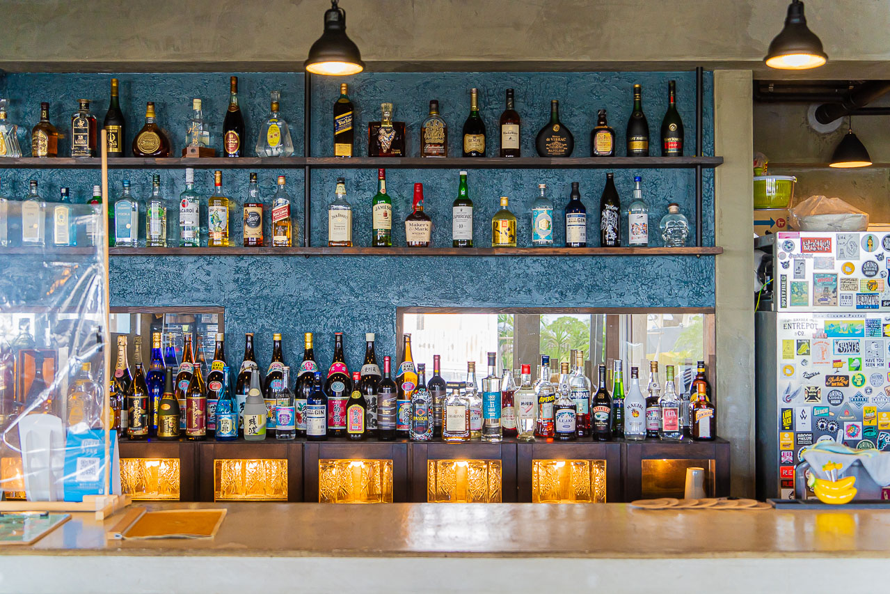 저녁에는 바 영업을 해서, 위스키나 오키나와 전통술 아와모리, 일본 고구마 소주도 종류 가득 준비되어 있습니다.