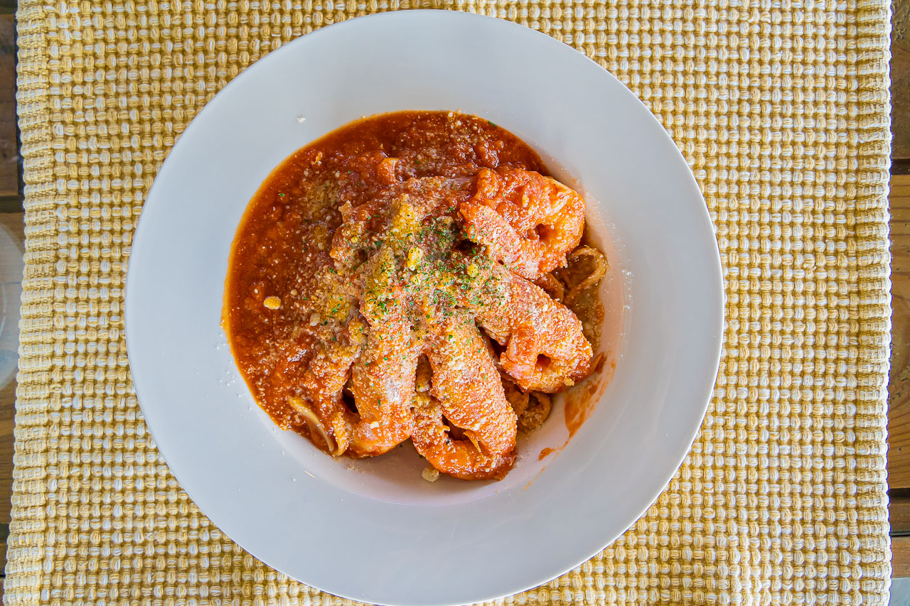 Marinx Harbor의 명물은 "오키나와 소바 면"을 사용한 파스타입니다.