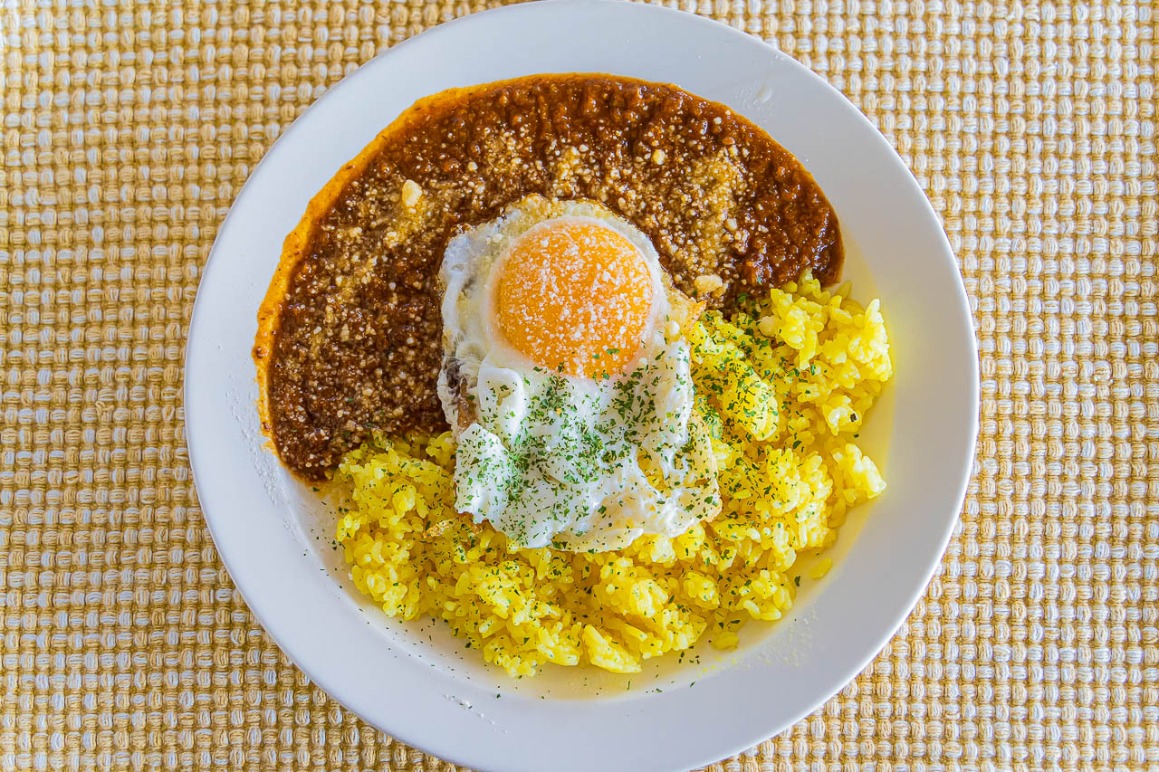 재료를 아주 잘게 썰어 넣어 씹히는 맛은 없지만, 감칠맛 가득한 키마 카레에 강황이 들어간 밥과 버터로 익힌 계란의 조합이 맛있습니다.