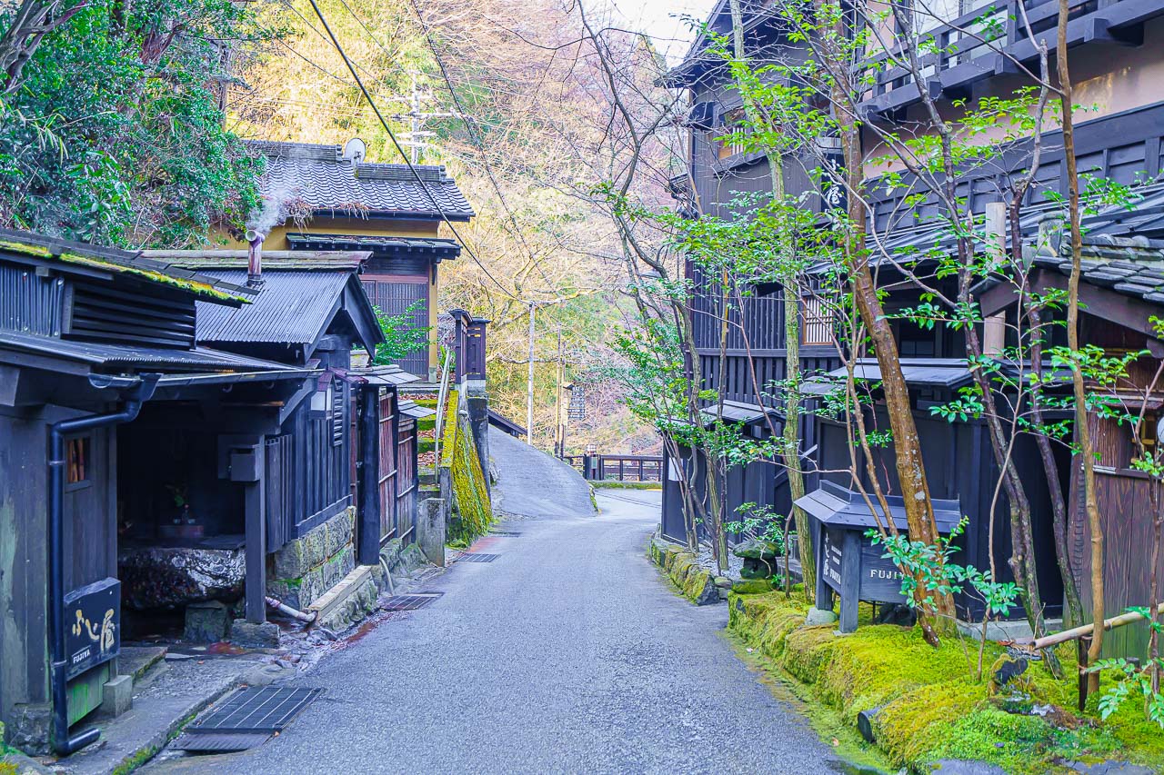 구로카와 온천의 길은 복잡하지 않아 산책하기도 좋은데 거의 대부분 건물은 온천 료칸입니다.