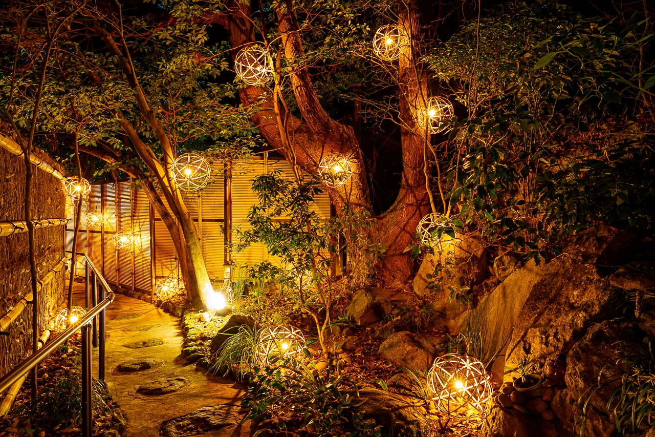 저녁에는 환상적인 불빛 사이로 추억을 만들 수 있는 구로카와 온천마을.