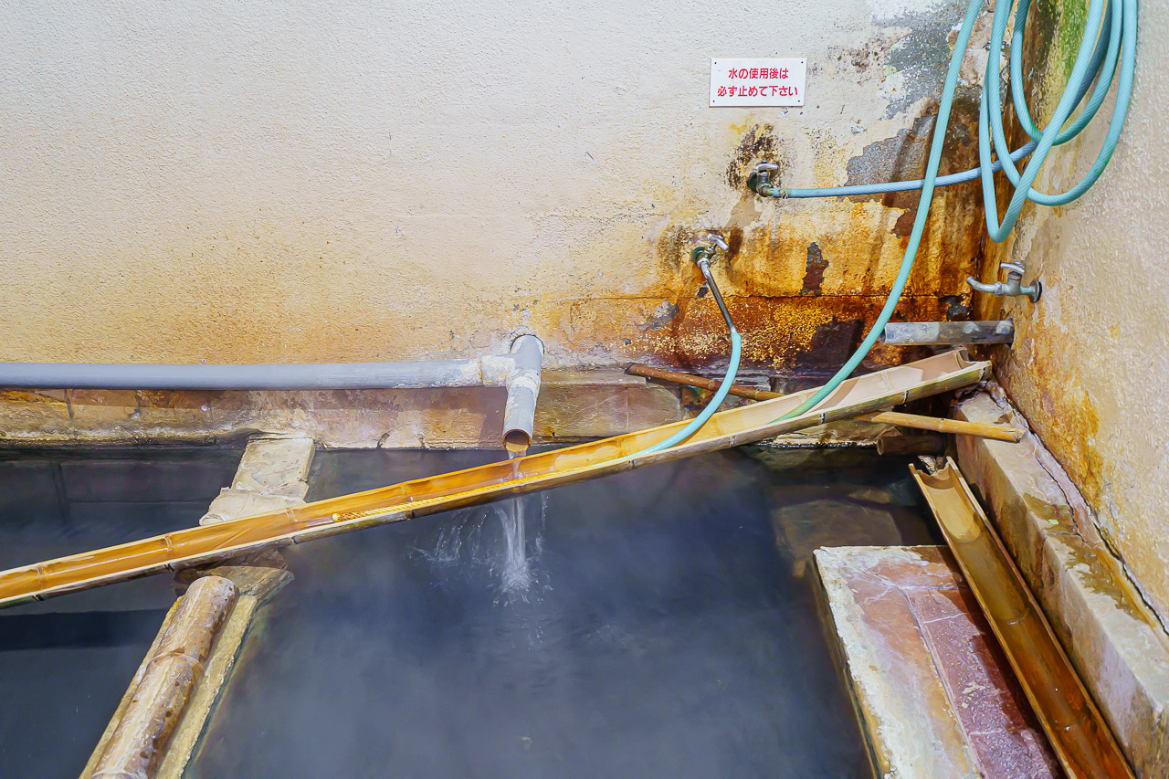 공동 목욕탕이라서 그런지 시설은 열악하고 물은 엄청나게 뜨거운 게 거의 구로카와 온천의 원천을 내려보내는 듯합니다.