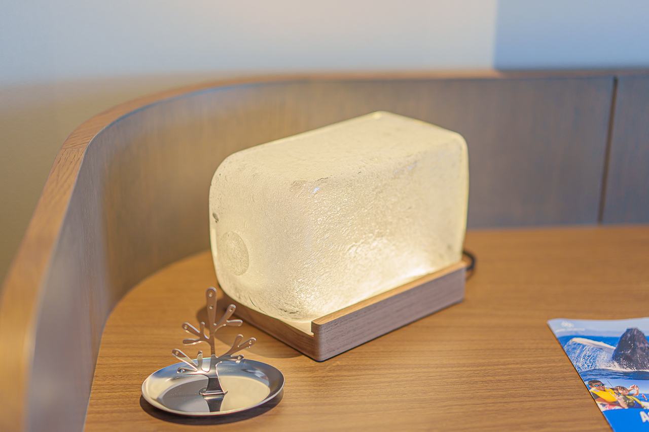 입구에 들어서면 얼음덩어리 같은 조명이 반겨줍니다.